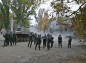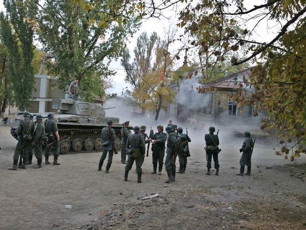 По сценарию танк выстрелил в здание, где засели молодогвардейцы (ВИДЕО).