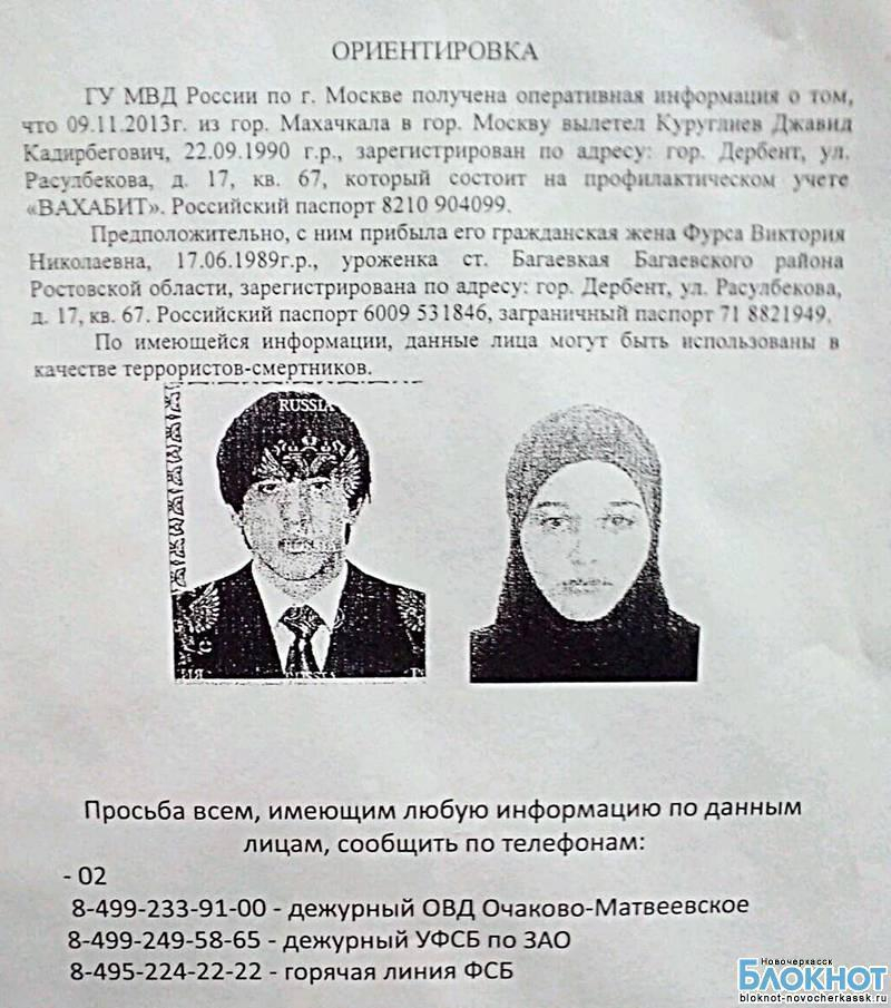 Согласно ориентировкам, расклеиваемым на вокзалах и местах массового скопления людей, предполагаемыми исполнителями возможных терактов являются два человека.